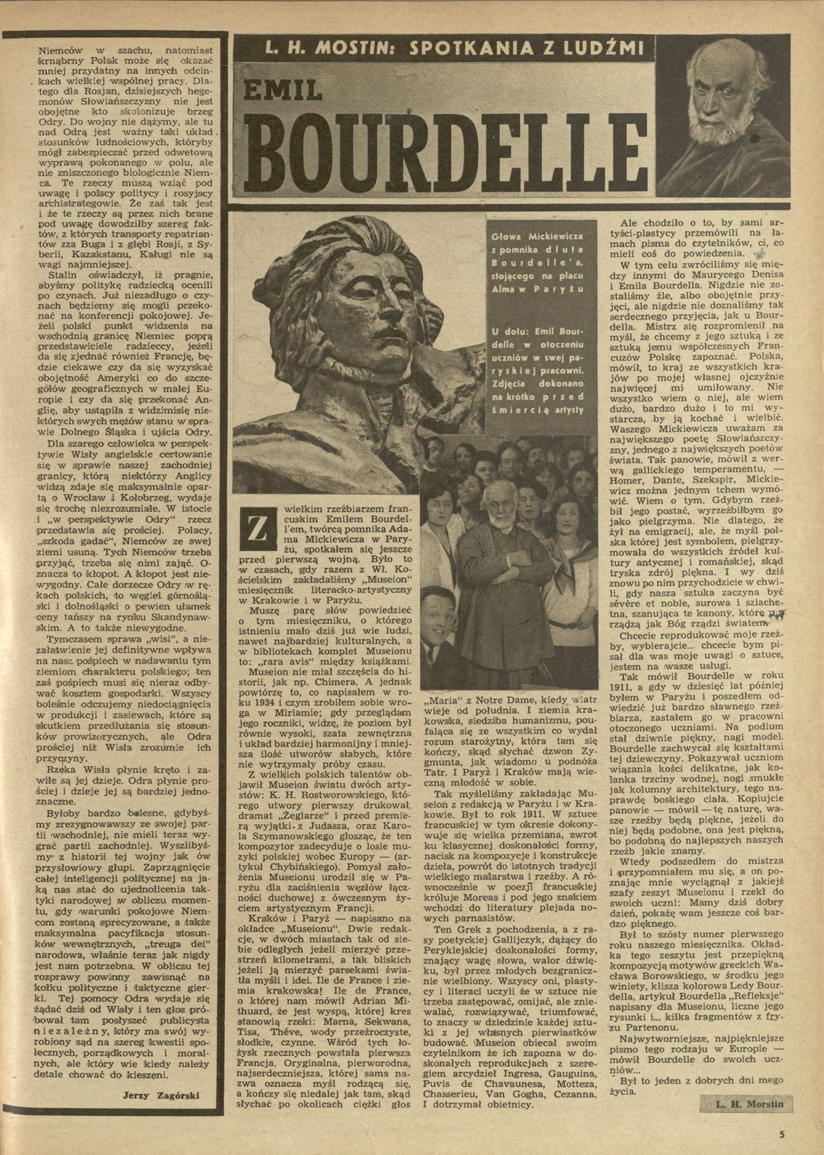 Archiwum / Artykuł nr 60 (22/1946) 33/70 Podziel się Tytuł Spotkania z ludźmi Emil Bourdelle Autor Ludwik Hieronim Morstin Kategoria Artykuł Artykuł z numeru 60 (22/1946) Data wydania 2 czerwca 1946 Tagi Emil Bourdelle
