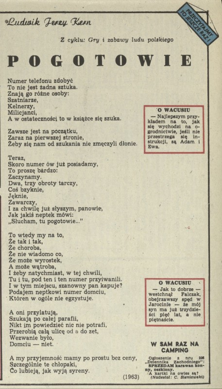 Archiwum / Rozmaitości [old] nr 2054 (43/1984) 12/54 Podziel się Tytuł Pogotowie Autor Ludwik Jerzy Kern Rubryka Rozmaitości [old] Artykuł z numeru 2054 (43/1984) Data wydania 21 października 1984