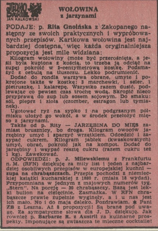 Archiwum / Jedno danie nr 2054 (43/1984) 84448/123969 Podziel się Tytuł Jedno danie Autor Jan Kalkowski Rubryka Jedno danie Artykuł z numeru 2054 (43/1984) Data wydania 21 października 1984 Tagi wołowina