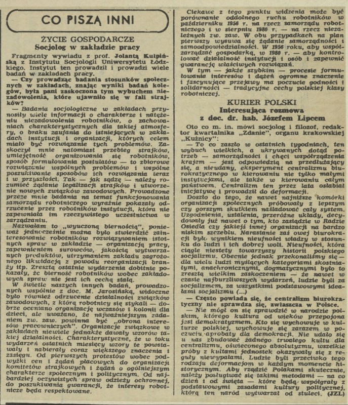 Archiwum / Co piszą inni nr 1853-54 (41-42/1980) 76836/123969 Podziel się Tytuł Co piszą inni Rubryka Co piszą inni Artykuł z numeru 1853-54 (41/1980) Data wydania 12 października 1980