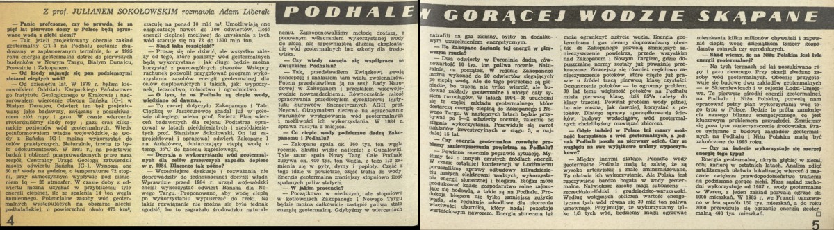 Archiwum / Wywiad nr 2282 (10/1989) 1/1 Podziel się Tytuł Podhale w gorącej wodzie skąpane Autor Adam Liberak Kategoria Wywiad Artykuł z numeru 2282 (10/1989) Data wydania 5 marca 1989 Tagi Julian Sokołowski wody termalne źródła termalne Podhale