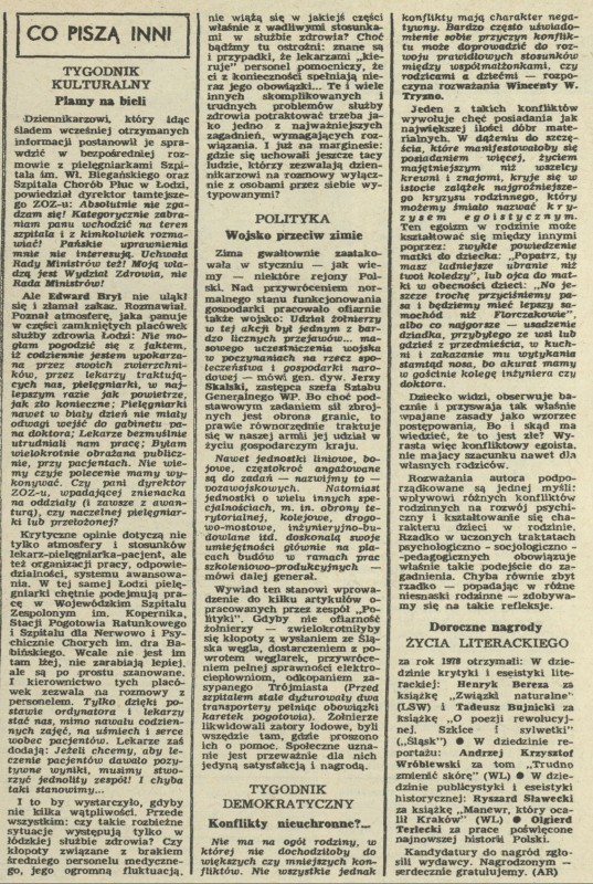 Archiwum / Co piszą inni nr 1766 (06/1979) 05/41 Podziel się Tytuł Co piszą inni Rubryka Co piszą inni Artykuł z numeru 1766 (6/1979) Data wydania 11 lutego 1979 Tagi Tygodnik Kulturalny Polityka Tygodnik Demokratyczny Życie Literackie