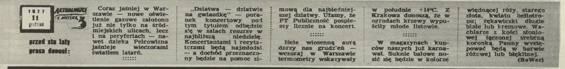 Archiwum / Aktualności z myszką nr 1705 (50/1977) 41/43 Podziel się Tytuł Aktualności z myszką – 11 grudzień 1877 Autor BoWer Rubryka Aktualności z myszką Artykuł z numeru 1705 (50/1977) Data wydania 11 grudnia 1977 Tagi prasa historia