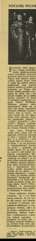 Archiwum / korespondencja własna "Przekroju" nr 1766 (06/1979) 203/2007 Podziel się Tytuł Pierwsza Polska w La Scali - Notatki włoskie (1) Autor Lucjan Kydryński Rubryka korespondencja własna "Przekroju" Artykuł z numeru 1766 (6/1979) Data wydania 11 lutego 1979