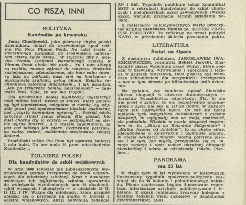 Archiwum / Co piszą inni nr 1768 (08/1979) 298/2007 Podziel się Tytuł Co piszą inni Autor AR Rubryka Co piszą inni Artykuł z numeru 1768 (8/1979) Data wydania 25 lutego 1979