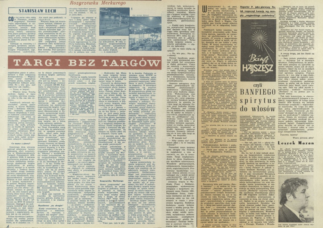 Archiwum / Artykuł nr 1768 (08/1979) 16/45 Podziel się Tytuł Targi bez targów Autor Stanisław Lech Kategoria Artykuł Artykuł z numeru 1768 (8/1979) Data wydania 25 lutego 1979