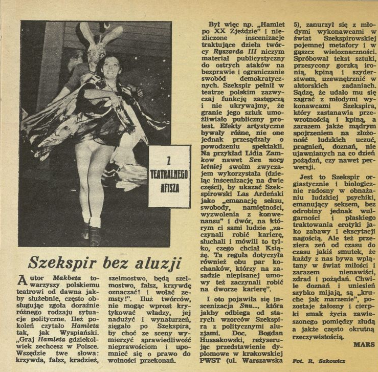 Archiwum / Teatr nr 2284 (12/1989) 93988/123969 Podziel się Tytuł Z teatralnego afisza: Szekspir bez aluzji Autor mars Rubryka Teatr Artykuł z numeru 2284 (12/1989) Data wydania 19 marca 1989 Tagi teatr Szekspir