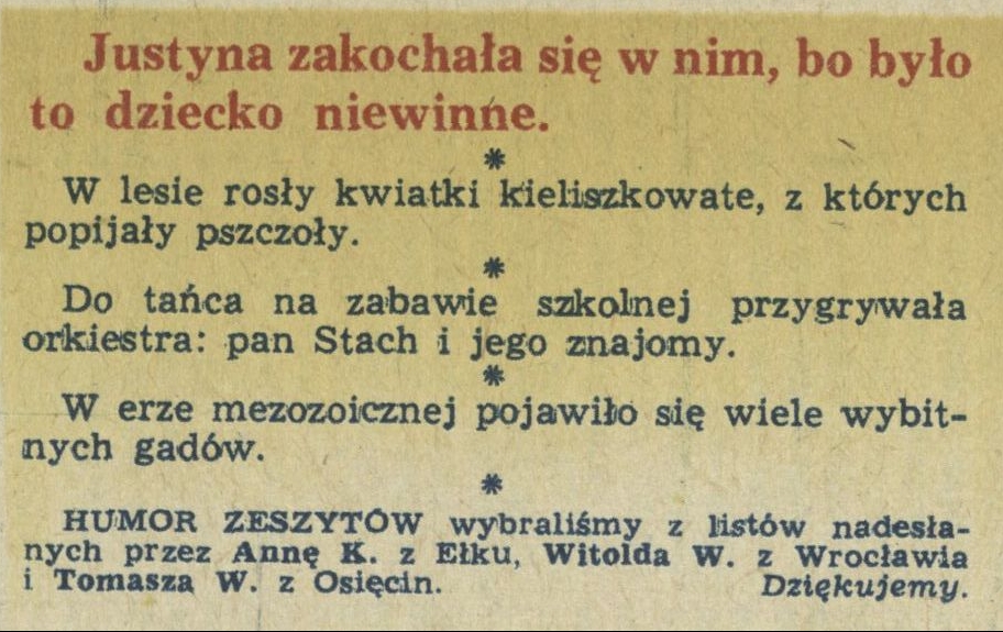 Archiwum / Humor zeszytów szkolnych nr 1766 (06/1979) 104/779 Podziel się Tytuł Humor zeszytów szkolnych Rubryka Humor zeszytów szkolnych Artykuł z numeru 1766 (6/1979) Data wydania 11 lutego 1979