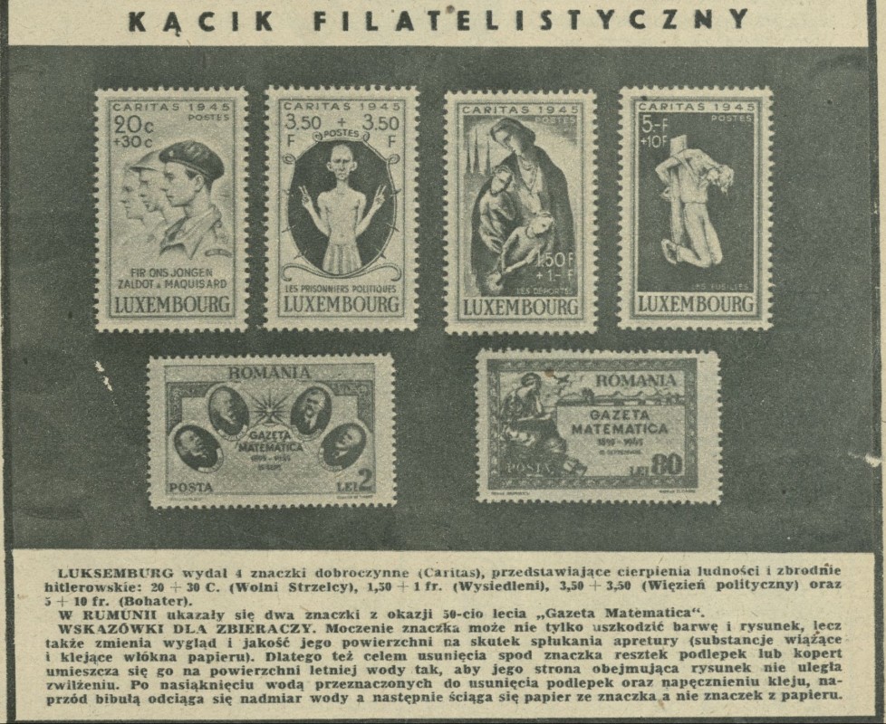 Archiwum / Filatelistyka nr 52 (14/1946) 27/127 Podziel się Tytuł Kącik filatelistyczny Rubryka Filatelistyka Artykuł z numeru 52 (14/1946) Data wydania 7 kwietnia 1946 Tagi znaczki Luksemburg znaczki Rumunia