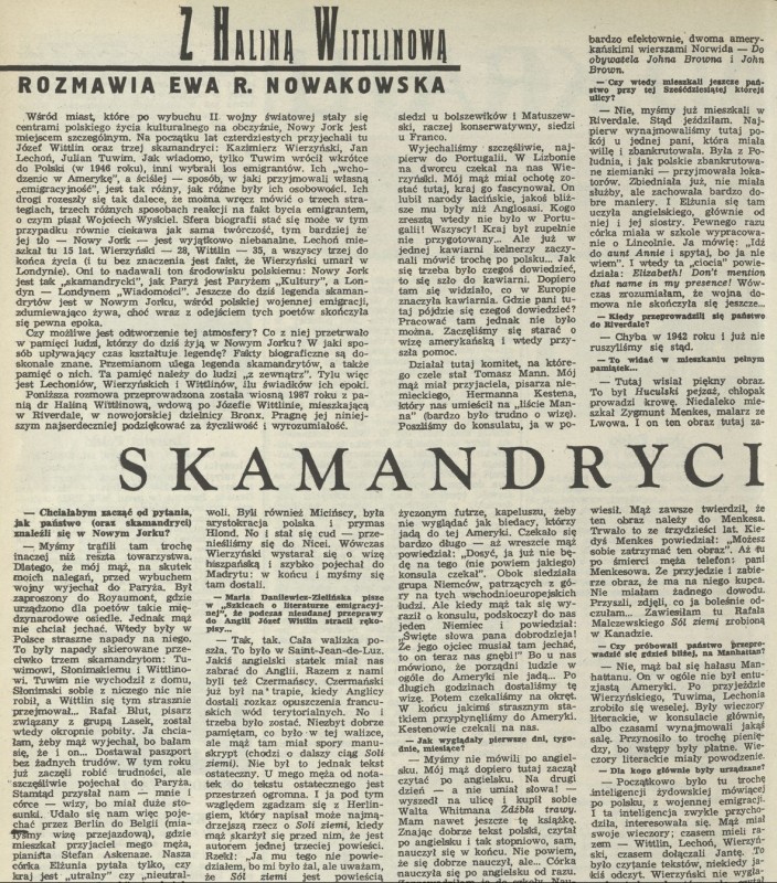 Archiwum / Rozmowy „Przekroju” nr 2285 (13/1989) 35/186 Podziel się Tytuł Skamandryci w Nowym Jorku Autor Ewa R. Nowakowska Rubryka Rozmowy „Przekroju” Artykuł z numeru 2285 (13/1989) Data wydania 26 marca 1989 Tagi Halina Wittlionowa Skamander Kazimierz Wierzyński poezja