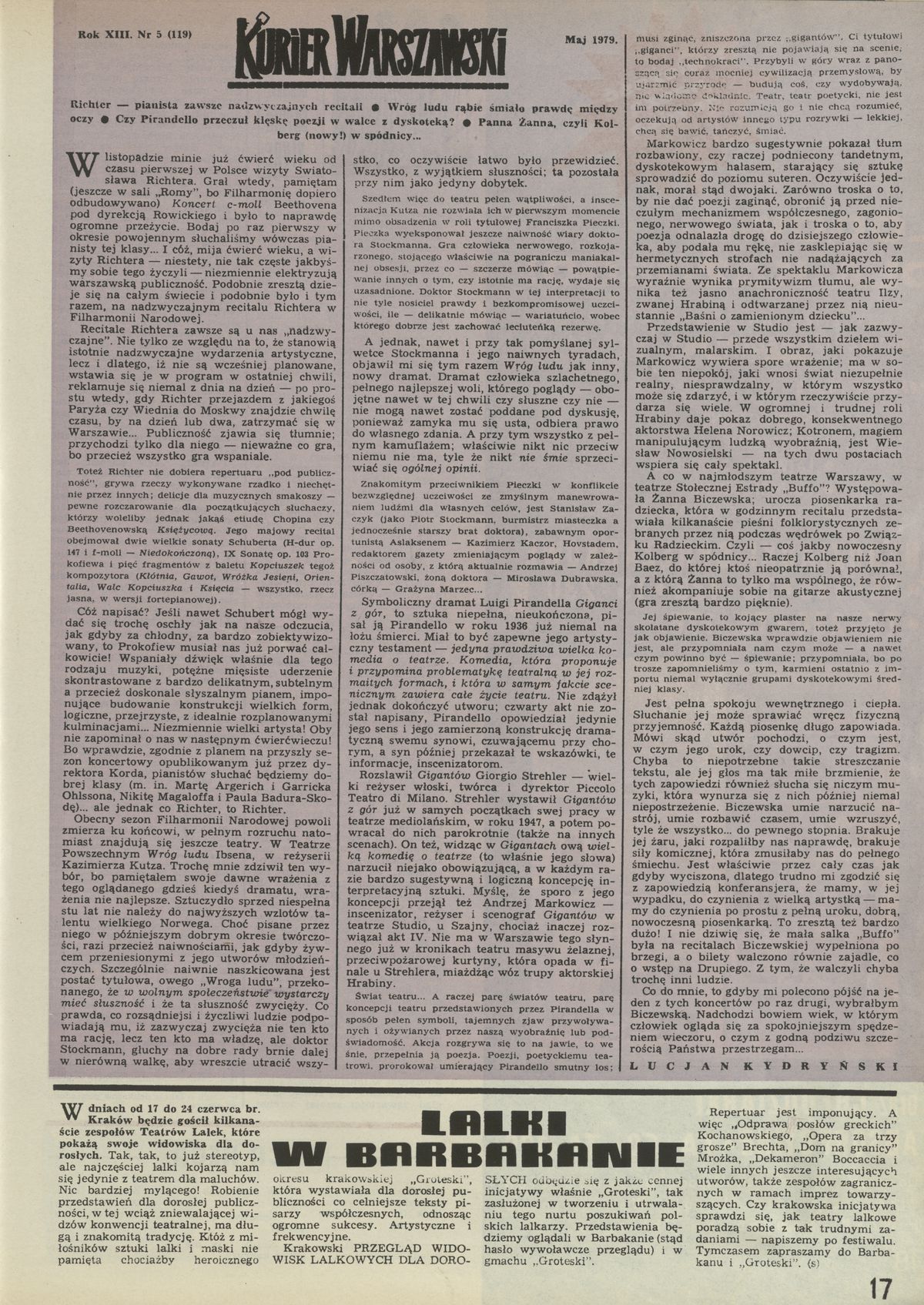 Archiwum / Kurier Warszawski nr 1783 (23/1979) 07/14 Podziel się Tytuł Kurier Warszawski Autor Lucjan Kydryński Rubryka Kurier Warszawski Artykuł z numeru 1783 (23/1979) Data wydania 10 czerwca 1979