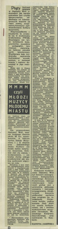 Archiwum / Kultura nr 1784 (24/1979) 1/6 Podziel się Tytuł MMMM czyli Młodzi Muzycy... Autor Danuta Jasińska Kategoria Kultura Artykuł z numeru 1784 (24/1979) Data wydania 17 czerwca 1979