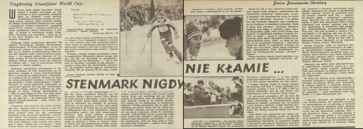 Archiwum / Sport nr 1772 (12/1979) 467/2007 Podziel się Tytuł Stenmark nigdy nie kłamie Autor Janina Januszewska-Skreiberg Rubryka Sport Artykuł z numeru 1772 (12/1979) Data wydania 25 marca 1979 Tagi narciarstwo Ingemar Stenmark