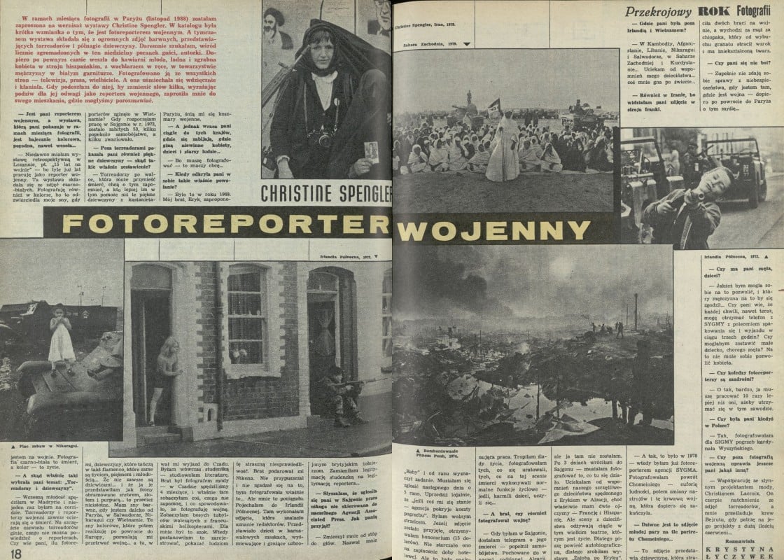 Archiwum / korespondencja własna "Przekroju" nr 2287 (15/1989) 50/513 Podziel się Tytuł Fotoreporter wojenny Autor Krystyna Łuczywek Rubryka korespondencja własna "Przekroju" Artykuł z numeru 2287 (15/1989) Data wydania 9 kwietnia 1989 Tagi Christine Spengler II wojna światowa Nikaragua