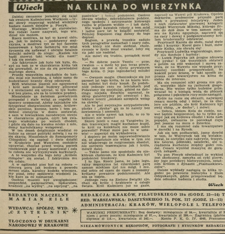 Archiwum / Nauka nr 170 (28/1948) 44/162 Podziel się Tytuł Na klina do wierzynka Autor Wiech Kategoria Nauka Artykuł z numeru 170 (28/1948) Data wydania 11 lipca 1948 Tagi Kazimierz Wielki Wawel