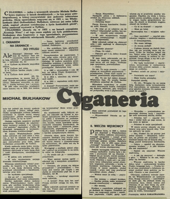 Archiwum / Kultura nr 1785 (25/1979) 996/2007 Podziel się Tytuł Michaił Bułhakow - Cyganeria Kategoria Kultura Artykuł z numeru 1785 (25/1979) Data wydania 24 czerwca 1979 Tagi teatr Michaił Bułhakow Cyganeria