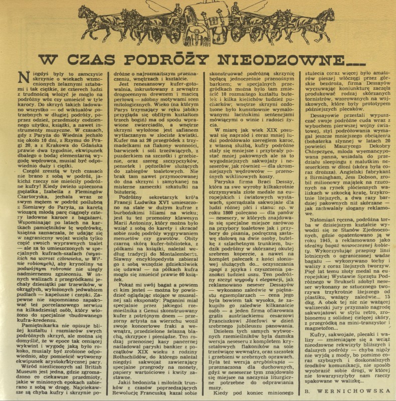 Archiwum / Moda nr 1789 (29/1979) 10/13 Podziel się Tytuł W czas podróży nieodzowne... Autor Bo Wer Kategoria Moda Artykuł z numeru 1789 (29/1979) Data wydania 22 lipca 1979 Tagi moda podróżna podróże historia ubioru