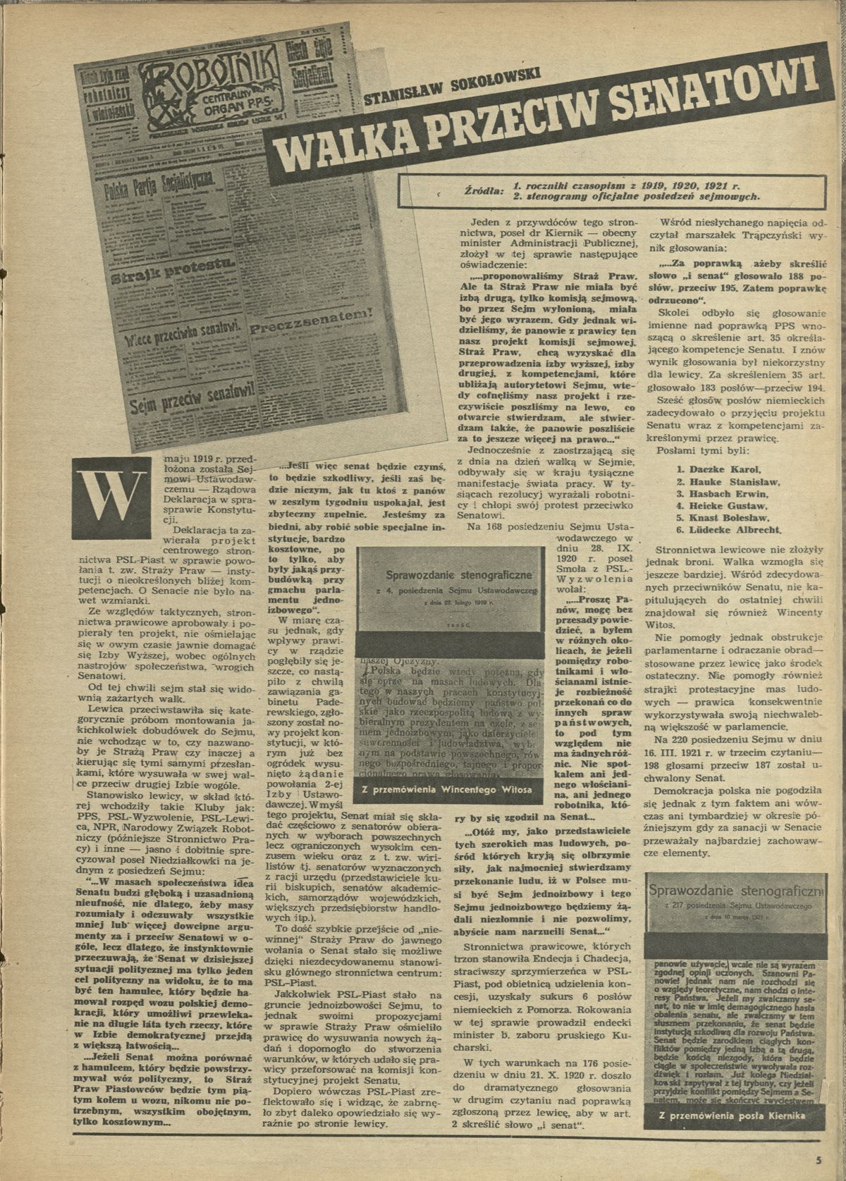 Archiwum nr 64 (26/1946) 01/14 Podziel się Tytuł Walka przeciw senatowi Autor Stanisław Sokołowski Artykuł z numeru 64 (26/1946) Data wydania 30 czerwca 1946