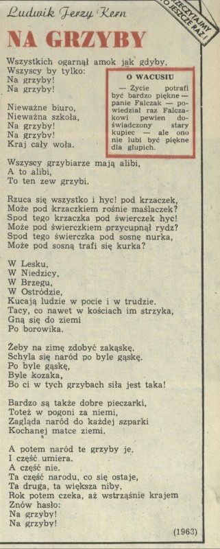 Archiwum / Rozmaitości [old] nr 2001 (42/1983) 10/51 Podziel się Tytuł Na grzyby Autor Ludwik Jerzy Kern Rubryka Rozmaitości [old] Artykuł z numeru 2001 (42/1983) Data wydania 16 października 1983