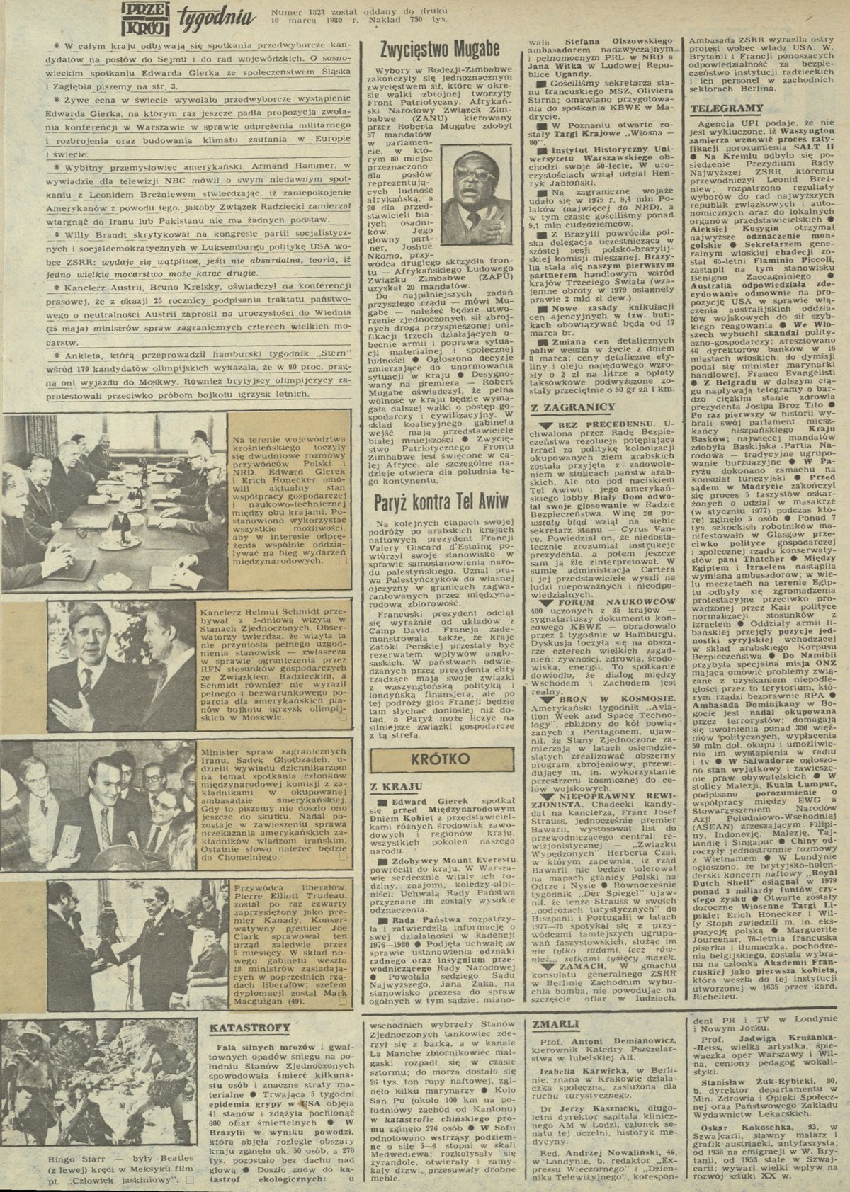 Archiwum / Przekrój tygodnia nr 1823 (11/1980) 18/550 Podziel się Tytuł Przekrój tygodnia Rubryka Przekrój tygodnia Artykuł z numeru 1823 (11/1980) Data wydania 16 marca 1980