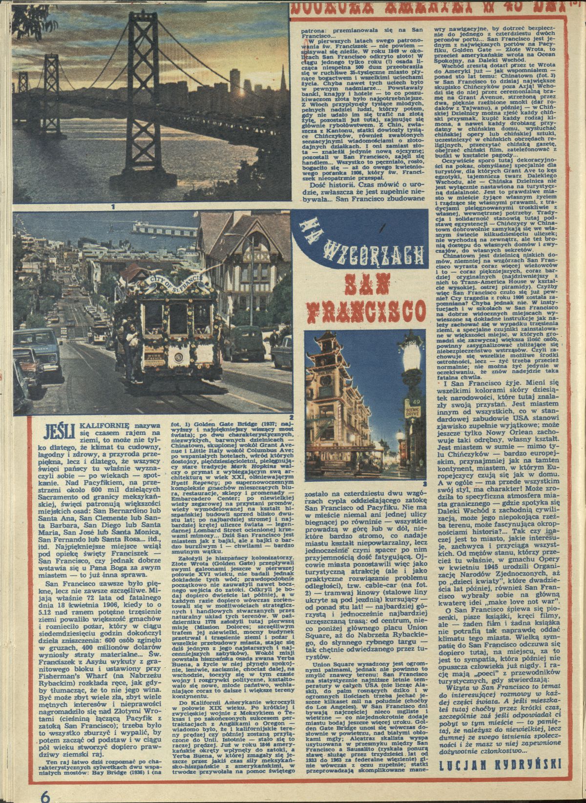 Archiwum / Artykuł nr 1724 (17/1978) 08/13 Podziel się Tytuł Na wzgórzach San Francisco Autor Lucjan Kydryński Kategoria Artykuł Artykuł z numeru 1724 (17/1978) Data wydania 23 kwietnia 1978 Tagi Podróż