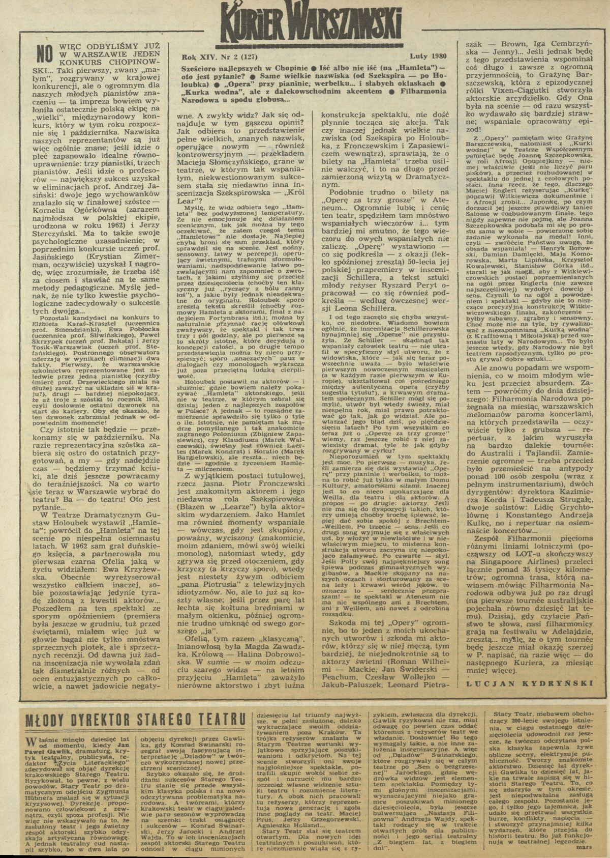 Archiwum / Kurier Warszawski nr 1823 (11/1980) 76314/123969 Podziel się Tytuł Kurier Warszawski Autor Lucjan Kyrdynski Rubryka Kurier Warszawski Artykuł z numeru 1823 (11/1980) Data wydania 16 marca 1980