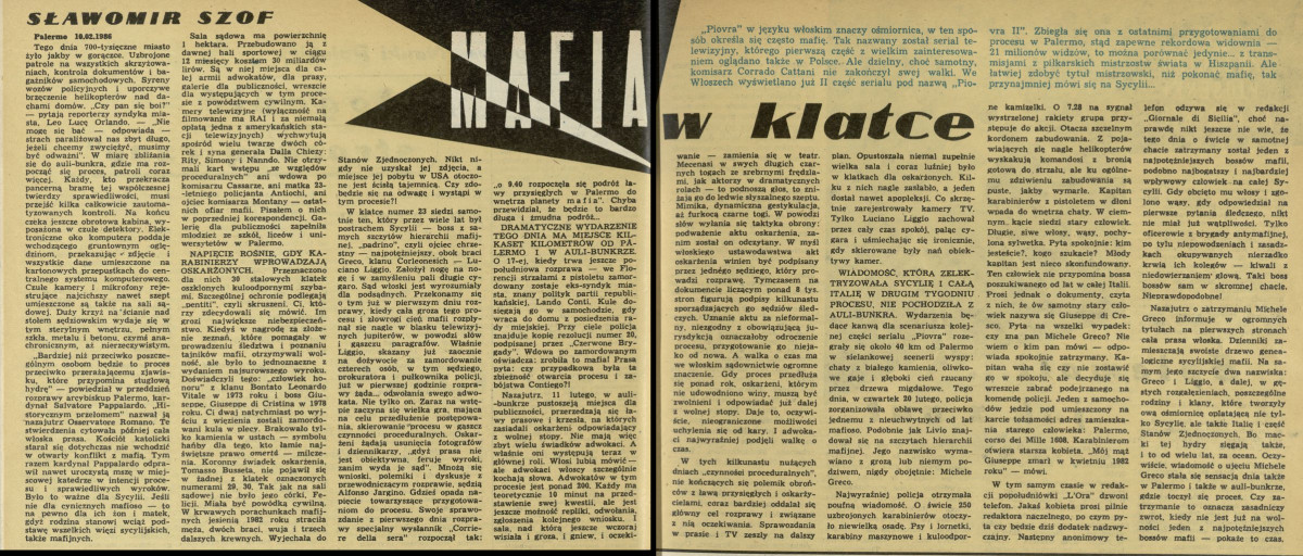 Archiwum / Artykuł nr 2127 (11/1986) 36806/123969 Podziel się Tytuł Mafia w klatce Autor Sławomir szof Kategoria Artykuł Artykuł z numeru 2127 (11/1986) Data wydania 16 marca 1986 Tagi Sycylia mafia włochy przestępczość