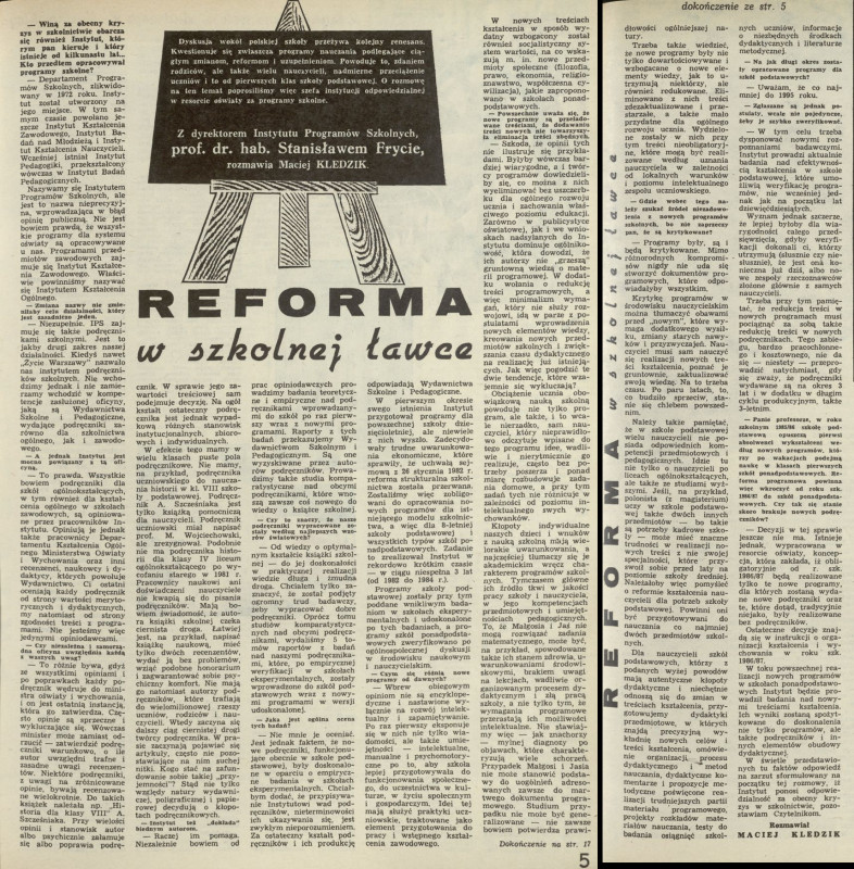 Archiwum / Wywiad nr 2128 (12/1986) 87177/123969 Podziel się Tytuł Reforma w szkolnej ławce Autor Maciej Kledzik Kategoria Wywiad Artykuł z numeru 2128 (12/1986) Data wydania 23 marca 1986 Tagi szkoła edukacja oświata
