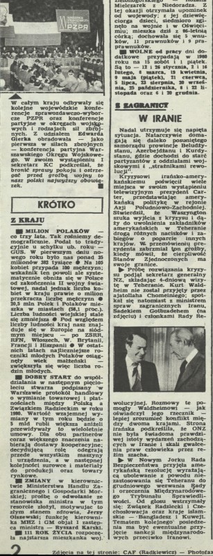 Archiwum / Krótko nr 1814 (02/1980) 62/62 Podziel się Tytuł Z kraju Rubryka Krótko Artykuł z numeru 1814 (2/1980) Data wydania 13 stycznia 1980 Tagi demografia kryzys irański