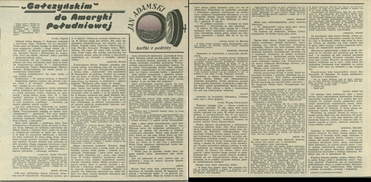 Archiwum / korespondencja własna "Przekroju" nr 1795 (35/1979) 07/10 Podziel się Tytuł Kartki z podróży (1) „Gałczyńskim” do Ameryki Południowej Autor Jan Adamski Rubryka korespondencja własna "Przekroju" Artykuł z numeru 1795 (35/1979) Data wydania 2 września 1979 Tagi Salvador