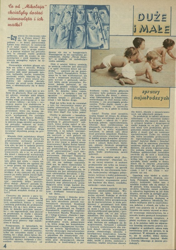 Archiwum / Artykuł nr 1808 (48/1979) 19/77 Podziel się Tytuł Duże i małe sprawy najmłodszych. Co od Mikołaja chciałyby dostać niemowlęta i ich matki? Autor Andrzej Ruchałowski Kategoria Artykuł Artykuł z numeru 1808 (48/1979) Data wydania 2 grudnia 1979