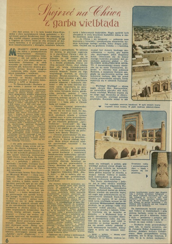 Archiwum / Artykuł nr 1808 (48/1979) 01/10 Podziel się Tytuł Spojrzeć na Chiwę z garbu wielbłąda Autor Dorota Terakowska Kategoria Artykuł Artykuł z numeru 1808 (48/1979) Data wydania 2 grudnia 1979