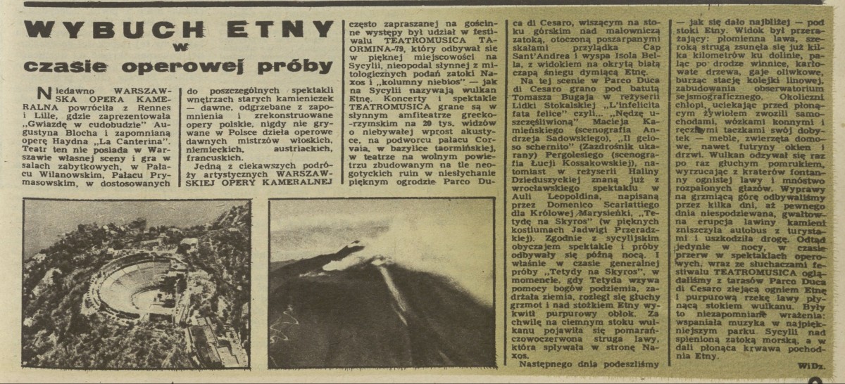Archiwum / Artykuł nr 1808 (48/1979) 140/161 Podziel się Tytuł Wybuch Etny w czasie operowej próby Autor WIDz. Kategoria Artykuł Artykuł z numeru 1808 (48/1979) Data wydania 2 grudnia 1979 Tagi wulkan erupcja Taormina