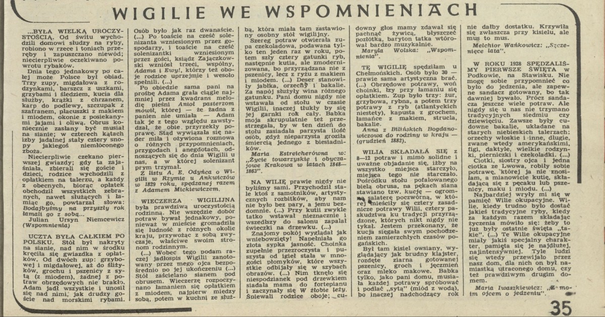 Archiwum / Różności nr 1863-64 (51-52/1980) 03/204 Podziel się Tytuł Wigilie we wspomnienieach Autor Bo Wer Kategoria Różności Artykuł z numeru 1863-64 (51/1980) Data wydania 21 grudnia 1980