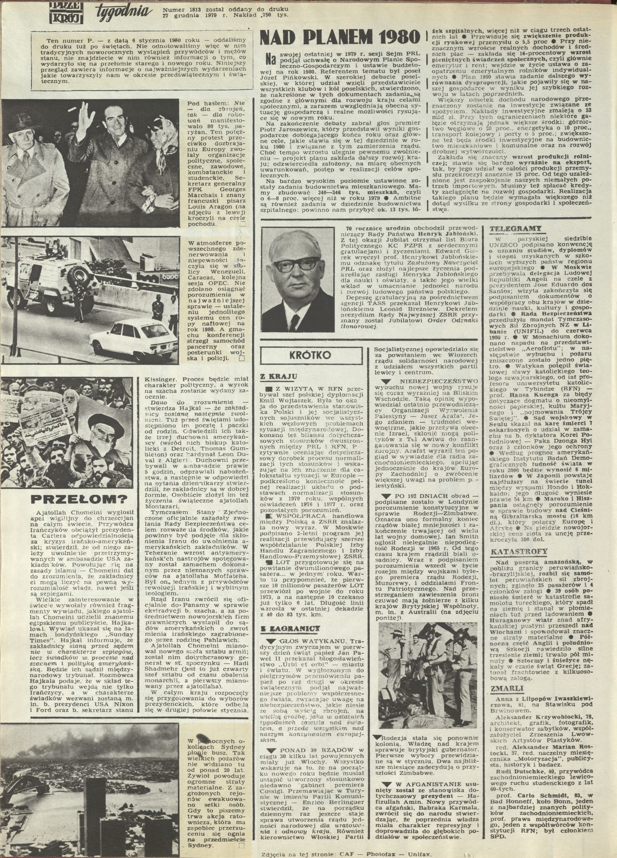 Archiwum / Przekrój tygodnia nr 1813 (01/1980) 2163/3219 Podziel się Tytuł Nad planem 1980 Rubryka Przekrój tygodnia Artykuł z numeru 1813 (1/1980) Data wydania 6 stycznia 1980