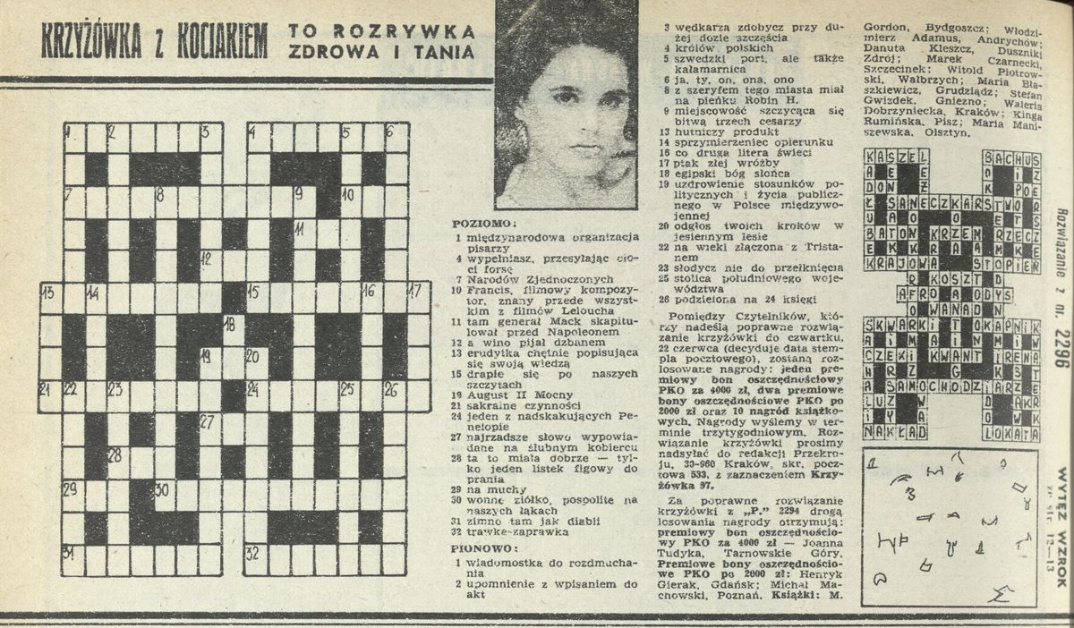 Archiwum / Krzyżówka z kociakiem nr 2297 (25/1989) 1085/19785 Podziel się Tytuł Krzyżówka z kociakiem Rubryka Krzyżówka z kociakiem Artykuł z numeru 2297 (25/1989) Data wydania 18 czerwca 1989