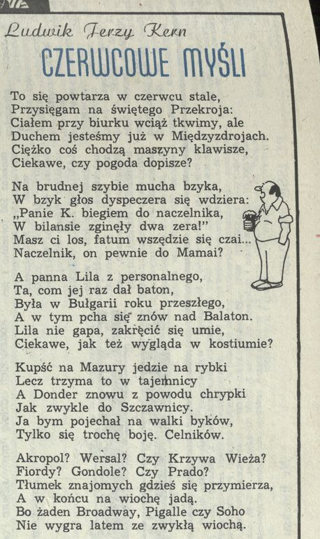 Archiwum / Myśli nr 2298 (26/1989) 94639/123969 Podziel się Tytuł Czerwcowe myśli Autor Ludwik Jerzy Kern Rubryka Myśli Artykuł z numeru 2298 (26/1989) Data wydania 25 czerwca 1989 Tagi wiersz czerwiec lato
