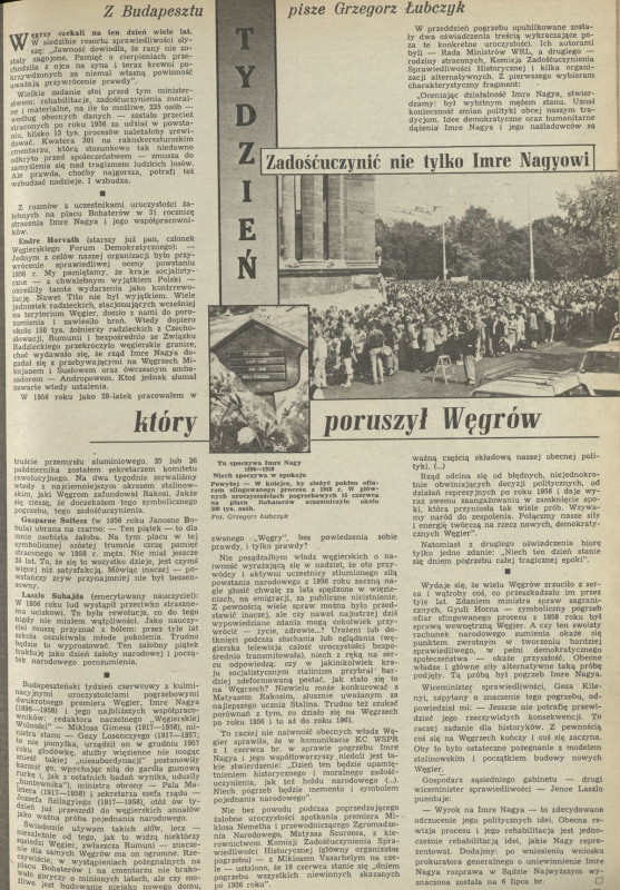 Archiwum / korespondencja własna "Przekroju" nr 2299 (27/1989) 94651/123969 Podziel się Tytuł Tydzień, który poruszył Węgrów Autor Grzegorz Łubczyk Rubryka korespondencja własna "Przekroju" Artykuł z numeru 2299 (27/1989) Data wydania 2 lipca 1989 Tagi Imre Nagy Budapeszt Endre Horvath Węgry