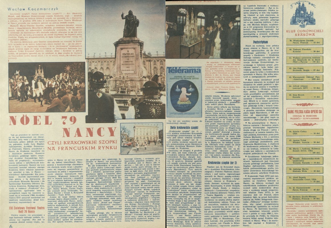 Archiwum / Relacja nr 1818 (06/1980) 76130/123969 Podziel się Tytuł Noel 79 Nancy Autor Wacław Kaczmarczyk Kategoria Relacja Artykuł z numeru 1818 (6/1980) Data wydania 10 lutego 1980