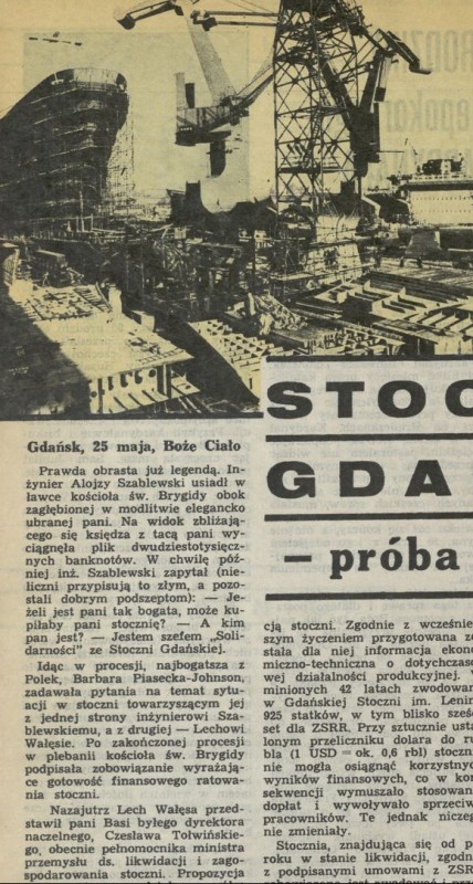 Archiwum / Wywiad nr 2300 (28/1989) 32/46 Podziel się Tytuł Stocznia Gdańska - próba raportu Autor Maciej Kledzik Kategoria Wywiad Artykuł z numeru 2300 (28/1989) Data wydania 9 lipca 1989 Tagi Lech Wałęsa Stocznia Gdańska Solidarność