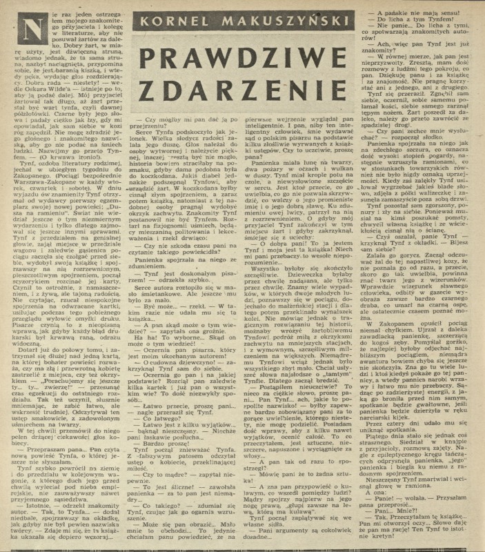 Archiwum / Felieton nr 82 (44/1946) 17/214 Podziel się Tytuł Prawdziwe zdarzenie Autor Kornel Makuszyński Kategoria Felieton Artykuł z numeru 82 (44/1946) Data wydania 3 listopada 1946 Tagi Kornel Makuszyński literatura