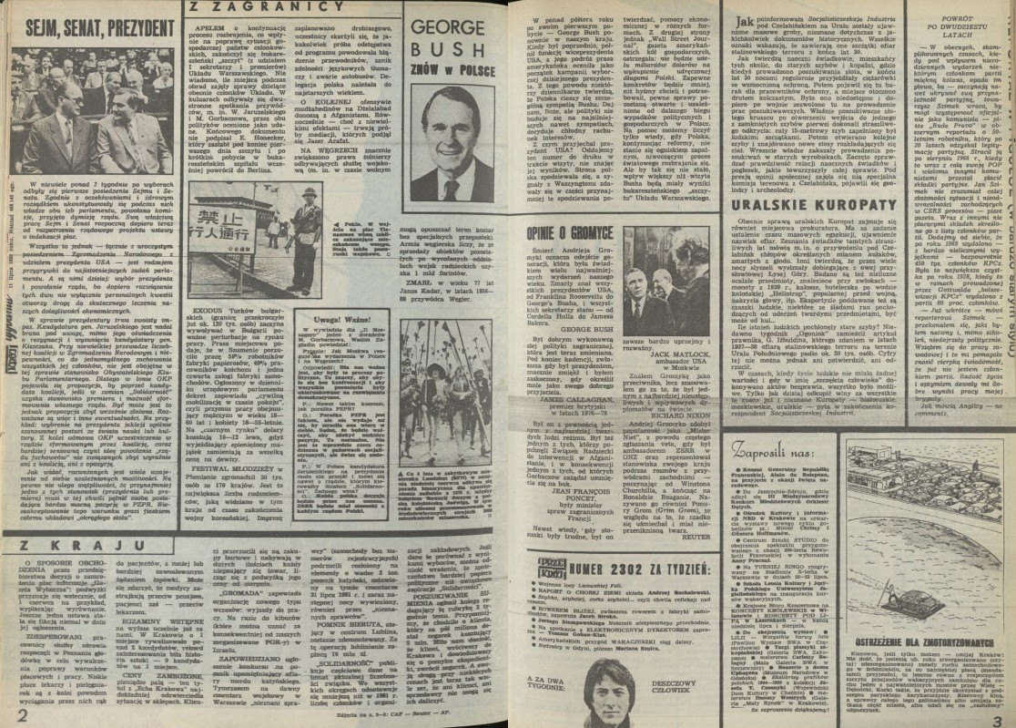 Archiwum / Przekrój tygodnia nr 2301 (29/1989) 53/55 Podziel się Tytuł Przekrój Tygodnia Rubryka Przekrój tygodnia Artykuł z numeru 2301 (29/1989) Data wydania 16 lipca 1989 Tagi George Bush sejm Lech Wałęsa szkolnictwo wyższe