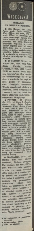 Archiwum / Rozrywka nr 2301 (29/1989) 32/41 Podziel się Tytuł Wideoteka Autor msz Kategoria Rozrywka Artykuł z numeru 2301 (29/1989) Data wydania 16 lipca 1989 Tagi Cel 48 godzin