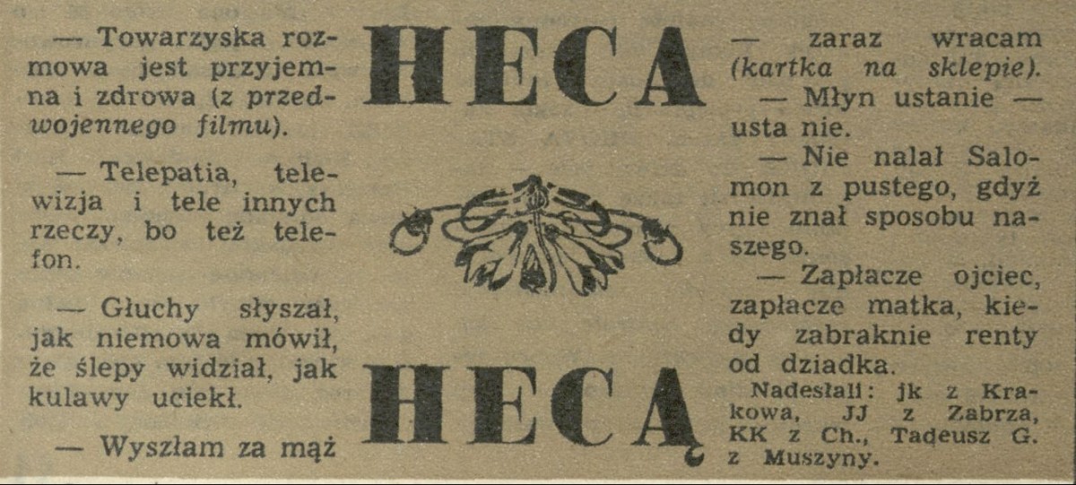 Archiwum / Heca hecą nr 2140 (24/1986) 87697/123969 Podziel się Tytuł Heca hecą Rubryka Heca hecą Artykuł z numeru 2140 (24/1986) Data wydania 15 czerwca 1986
