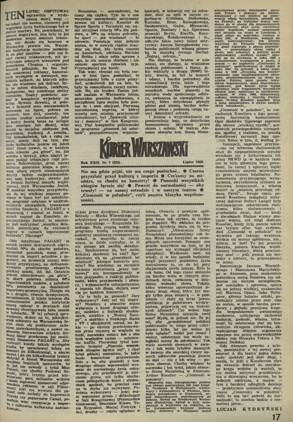 Archiwum / Kurier Warszawski nr 2304 (32/1989) 559/709 Podziel się Tytuł Kurier Warszawski Autor Lucjan Kydryński Rubryka Kurier Warszawski Artykuł z numeru 2304 (32/1989) Data wydania 6 sierpnia 1989 Tagi Ciemność w południe
