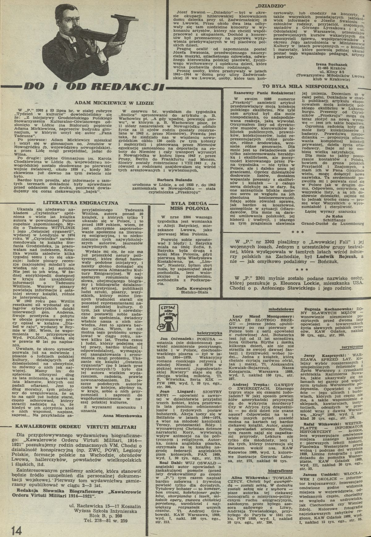 Archiwum / Listy do i od redakcji nr 2306 (34/1989) 94982/123969 Podziel się Tytuł [Listy] Rubryka Listy do i od redakcji Artykuł z numeru 2306 (34/1989) Data wydania 3 września 1989 Tagi listy do redakcji