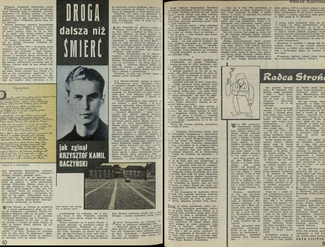 Archiwum / Artykuł nr 2307 (35/1989) 23/53 Podziel się Tytuł Droga dalsza niż śmierć Autor Wiesław Budzyński Kategoria Artykuł Artykuł z numeru 2307 (35/1989) Data wydania 10 września 1989 Tagi Krzysztof Kamil Baczyński powstanie warszawskie Basia Baczyńska historia wojna