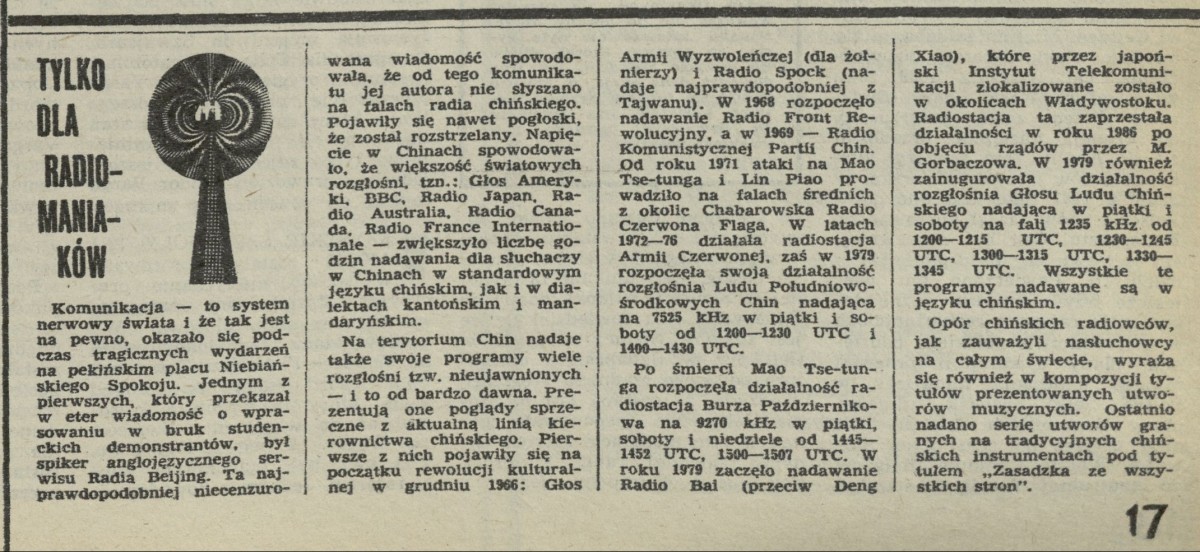 Archiwum / Nauka nr 2307 (35/1989) 123/423 Podziel się Tytuł Tylko dla radiomaniaków Kategoria Nauka Artykuł z numeru 2307 (35/1989) Data wydania 10 września 1989 Tagi radio Głos Ameryki BBC Radio Japan