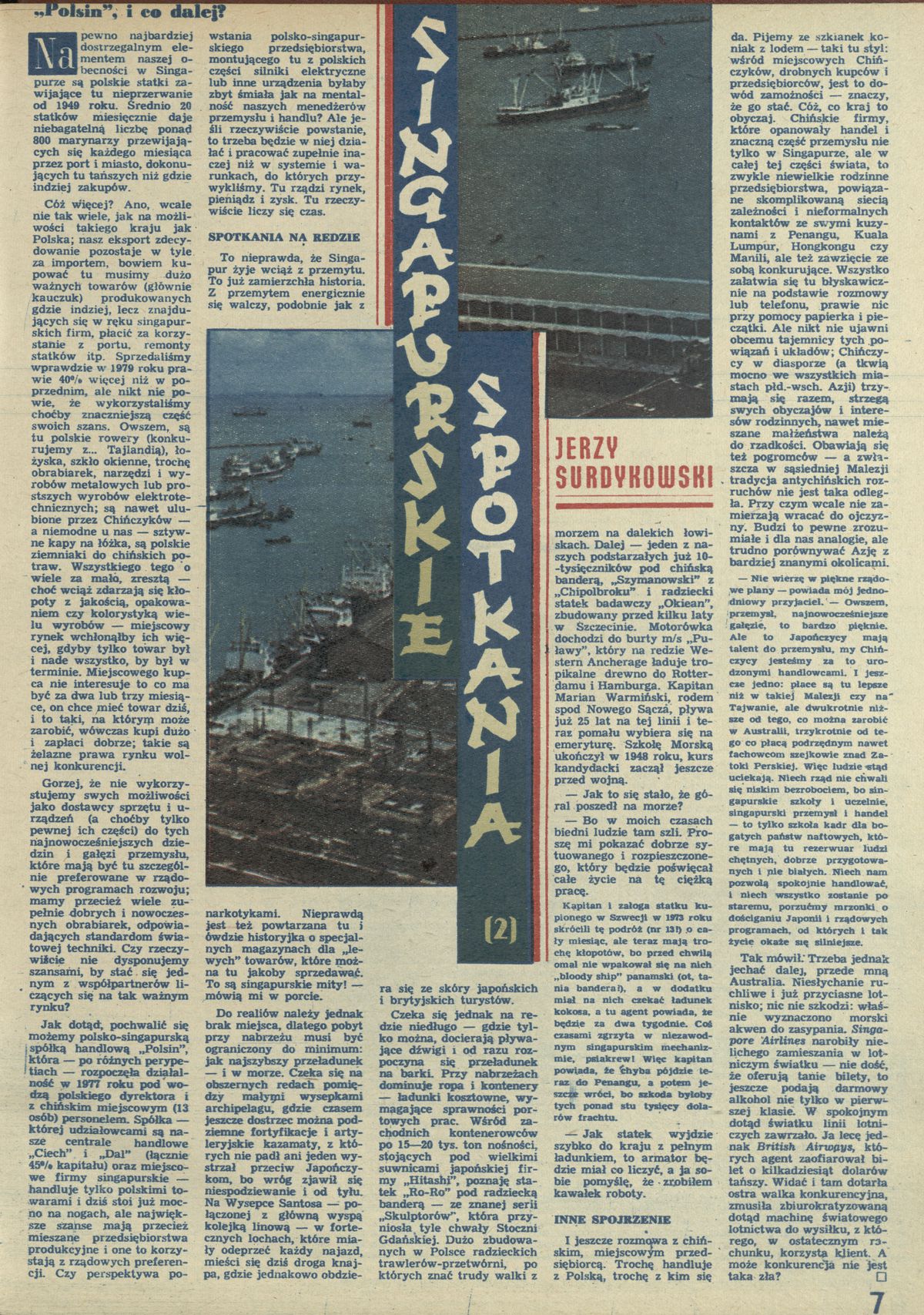 Archiwum / korespondencja własna "Przekroju" nr 1855 (43/1980) 76853/123969 Podziel się Tytuł Singapurskie spotkania Autor Jerzy Surdykowski Rubryka korespondencja własna "Przekroju" Artykuł z numeru 1855 (43/1980) Data wydania 26 października 1980