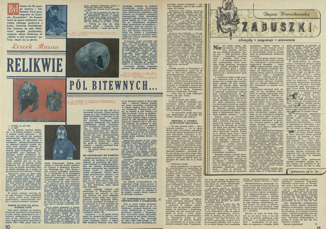 Archiwum / Artykuł nr 1856 (44/1980) 15/22 Podziel się Tytuł Relikwie pól bitewnych Autor Leszek Mazan Kategoria Artykuł Artykuł z numeru 1856 (44/1980) Data wydania 2 listopada 1980